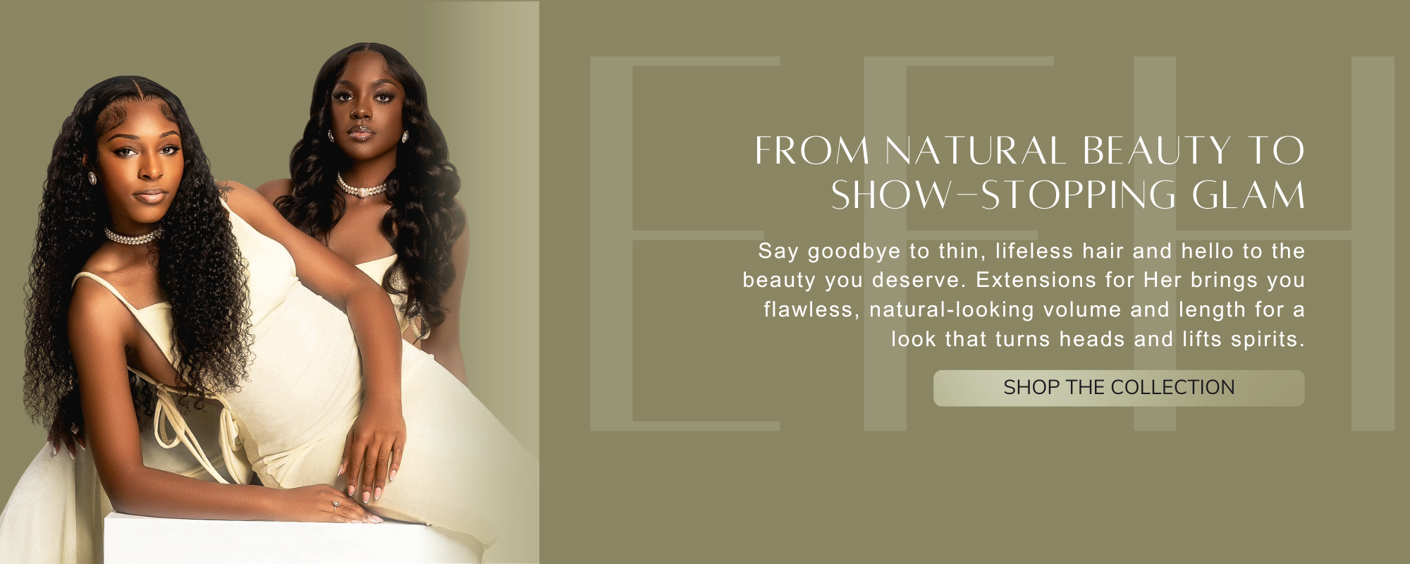 Our premium 100% human hair extensions offer a flawless, natural look with superior softness and durability